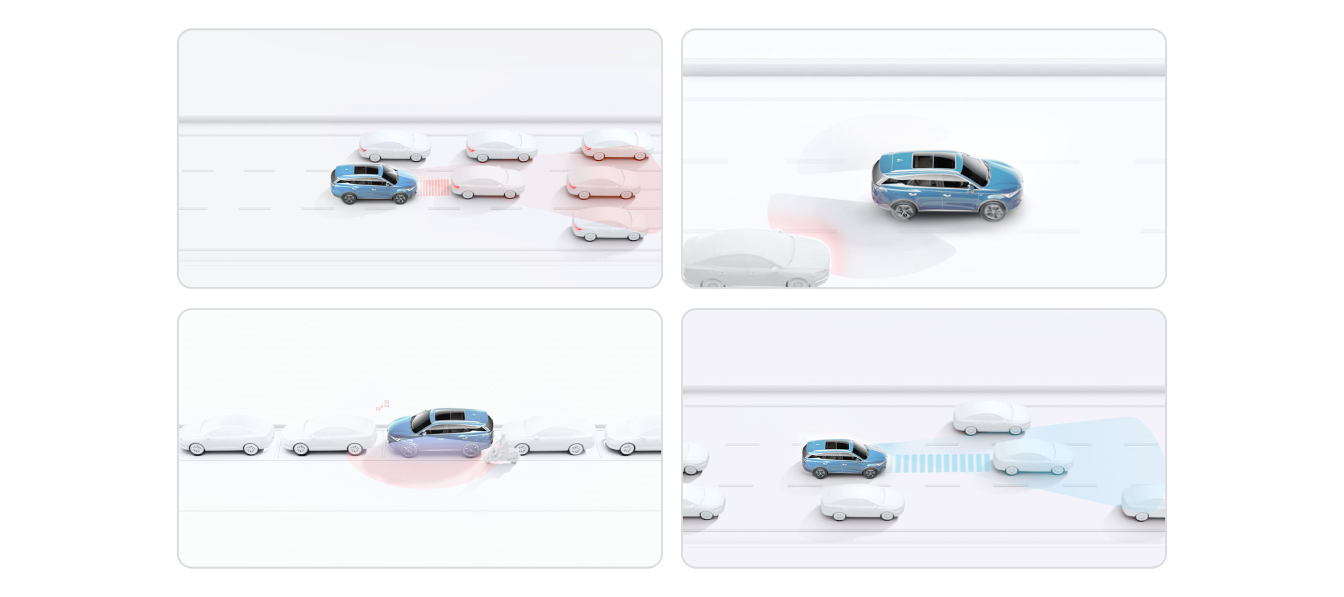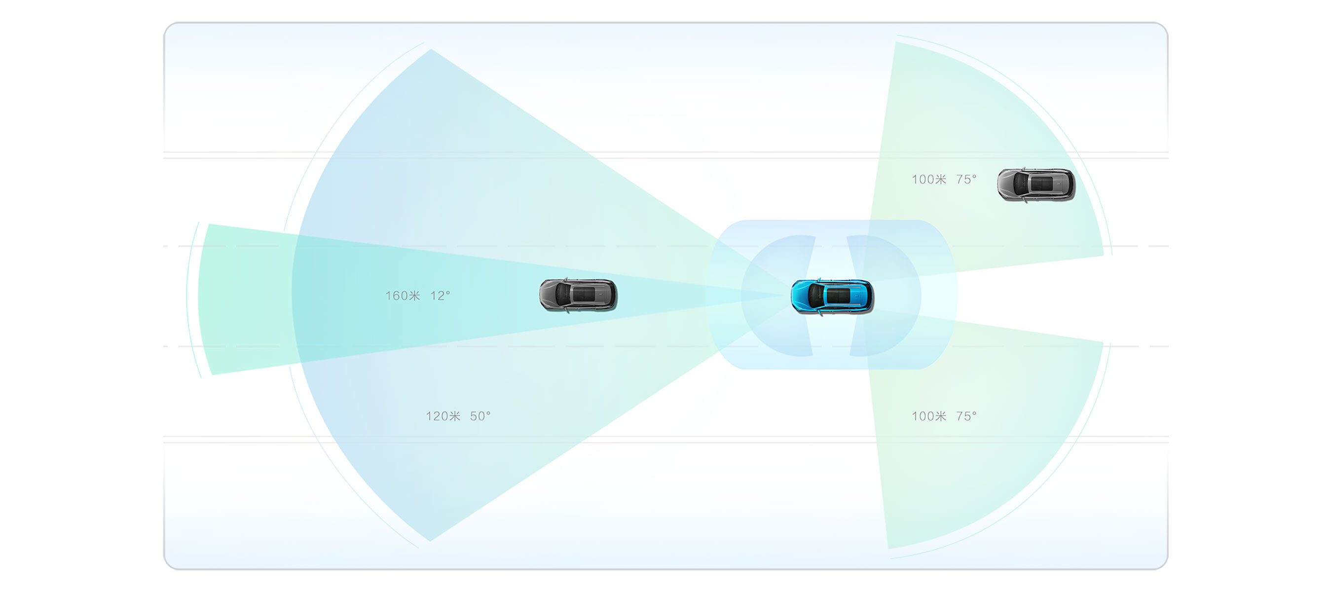 全系至高搭载8个超声波雷达、3个高精毫米波雷达、4个智能驾驶环视摄像头、1个智能驾驶高感知摄像头,实现L2级智能驾驶辅助。