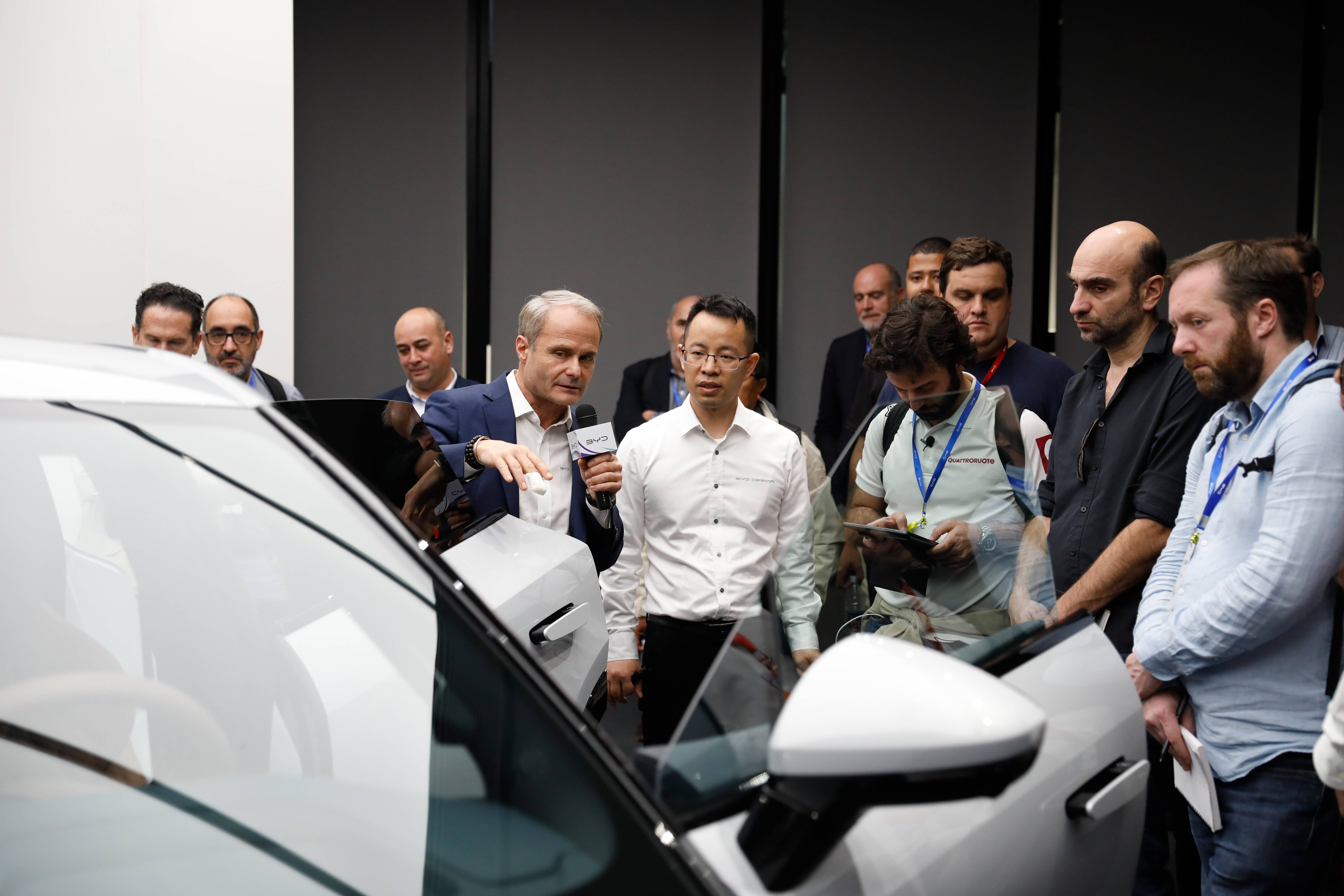 【图3 比亚迪全球设计总监沃尔夫冈·艾格与媒体分享设计理念】