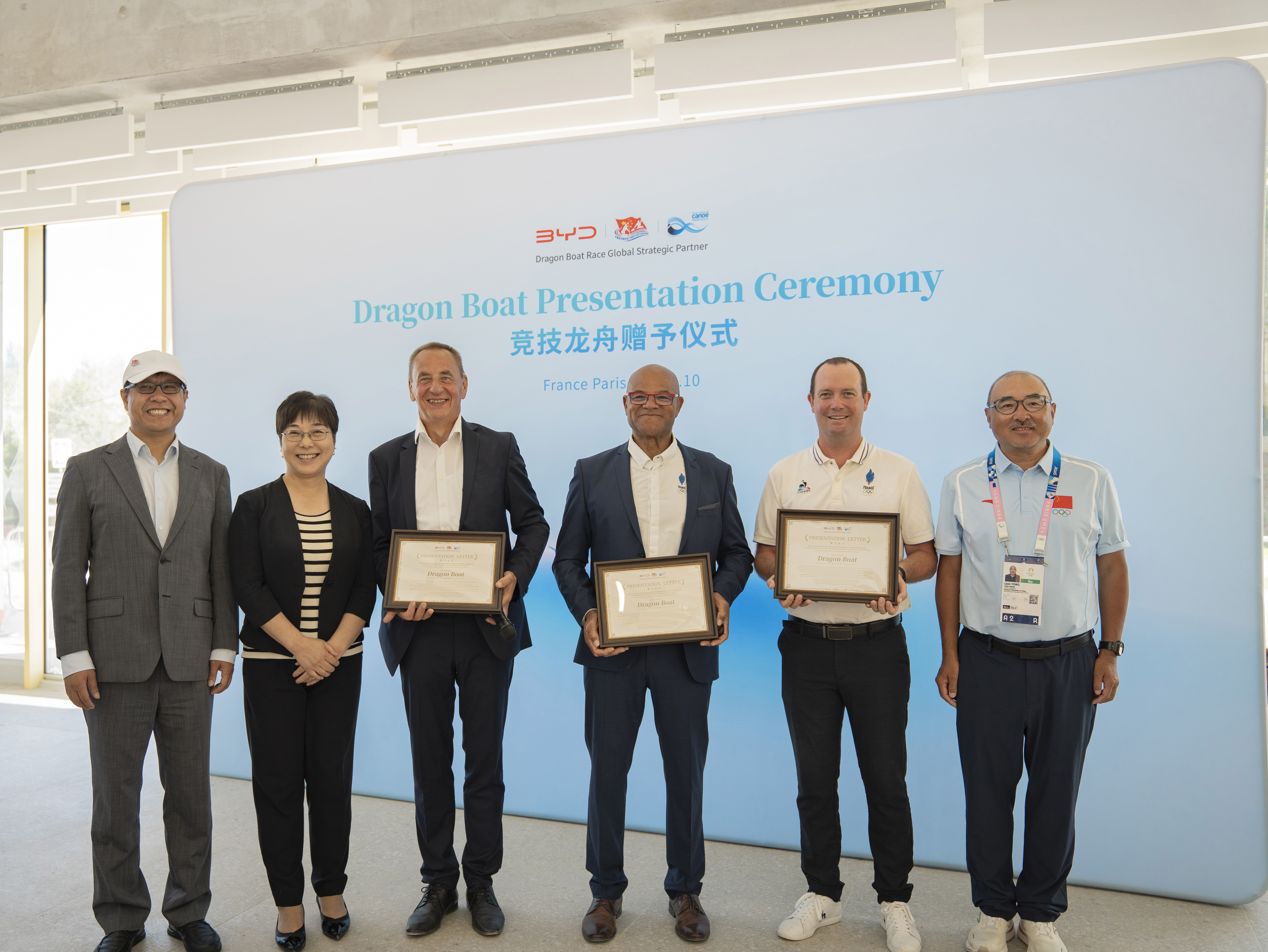 本次在巴黎,比亚迪除了参与到龙舟表演赛之外,更将3艘符合国际标准的竞技龙舟分别赠送给了国际皮划艇联合会、欧洲皮划艇协会、法国皮划艇协会。这3艘龙舟承载着比亚迪对龙舟运动的热爱与支持,以及对体育文化交流的友好态度,远渡重洋,落户巴黎,并将用于三家组织的日常训练及国际文化交流体验。比亚迪希望通过赠送竞技龙舟这一实际行动,激发更多人对龙舟运动的兴趣与热爱,为推动龙舟运动的全球化发展贡献一份力量,更为国际文化交流添砖加瓦。