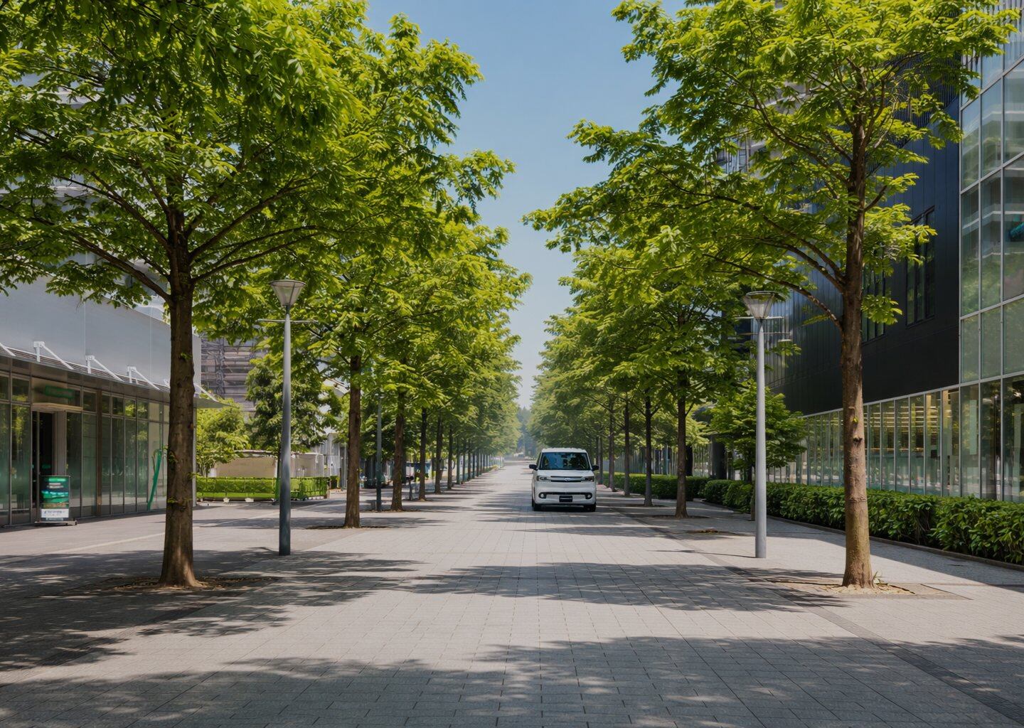日本の街では「四角い形=空間効率」が正義。でも、角がやさしく丸い四角なら、街に溶け込み、人にも近づける。