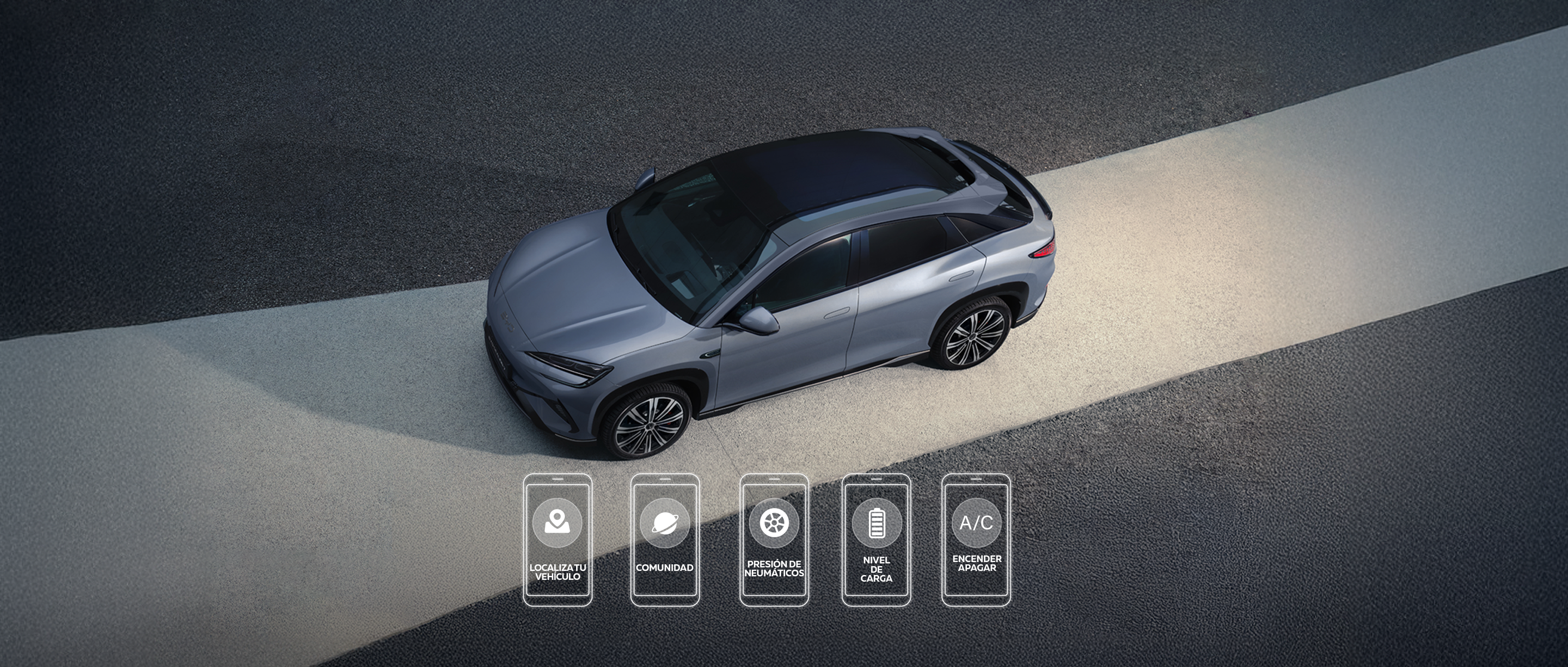 Las funciones disponibles incluyen: - Autonomía: Compruebe la autonomía eléctrica y el nivel de combustible del vehículo (híbridos enchufables) - Presión Neumáticos: Compruebe la presión de los neumáticos del vehículo. Puertas y ventanas: Compruebe si las puertas y ventanas del vehículo están cerradas. Adicional, subir ventanas remotamente. - A/C: Enciende el aire acondicionado con antelación para que la temperatura del interior del coche sea más agradable al entrar. - Asientos: Encienda la ventilación o la calefacción de los asientos con antelación para que la temperatura de los mismos sea más cómoda. - Seguros: Bloquee/desbloquee su vehículo a distancia. - Posición del Vehículo: Obtenga la localización del vehículo. - Servicios: Conozca la ubicación de Centros de reparación autorizados BYD y contacte vía telefónica para agendar una cita. - Luces y Claxon: Encuentre su vehículo aparcado mediante luces intermitentes o sonido del claxon. - Comunidad BYD: Desde el 5 de noviembre de 2024, la BYD App tiene una sección donde los usuarios de vehículos BYD, así como quienes están interesados en la marca, podrán interactuar con mayor cercanía con lo que les ofrece el mundo BYD.