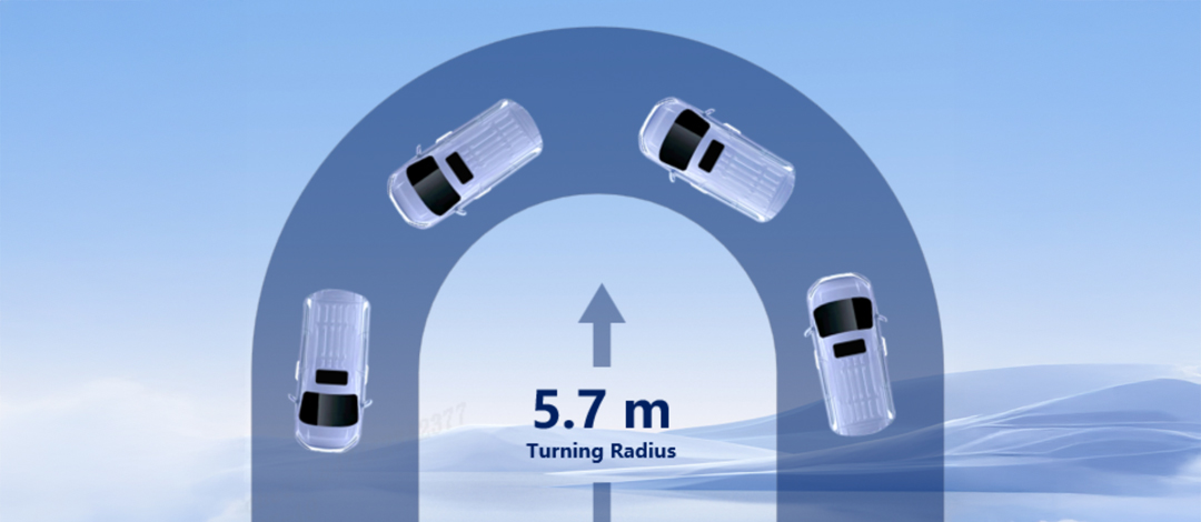 Gracias a su dirección de precisión R-EPS y un radio de vuelta de 5.7 metros, el M9 se destaca por su maniobrabilidad superior, ofreciéndote el mejor coeficiente de arrastre en su categoría. Con esta tecnología, disfrutarás de una conducción ágil y sin esfuerzo, incluso en los espacios más reducidos.