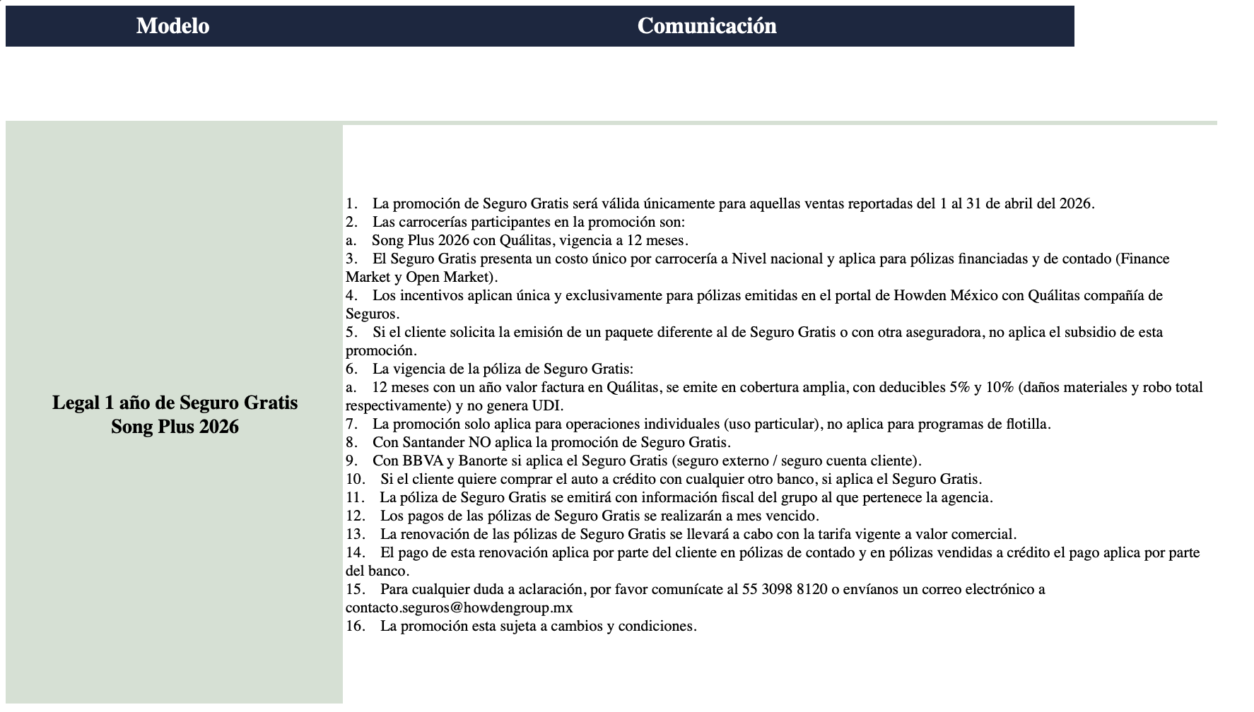 TÉRMINOS Y CONDICIONES BYD SONG PLUS OFERTA (año de seguro gratis) 2026