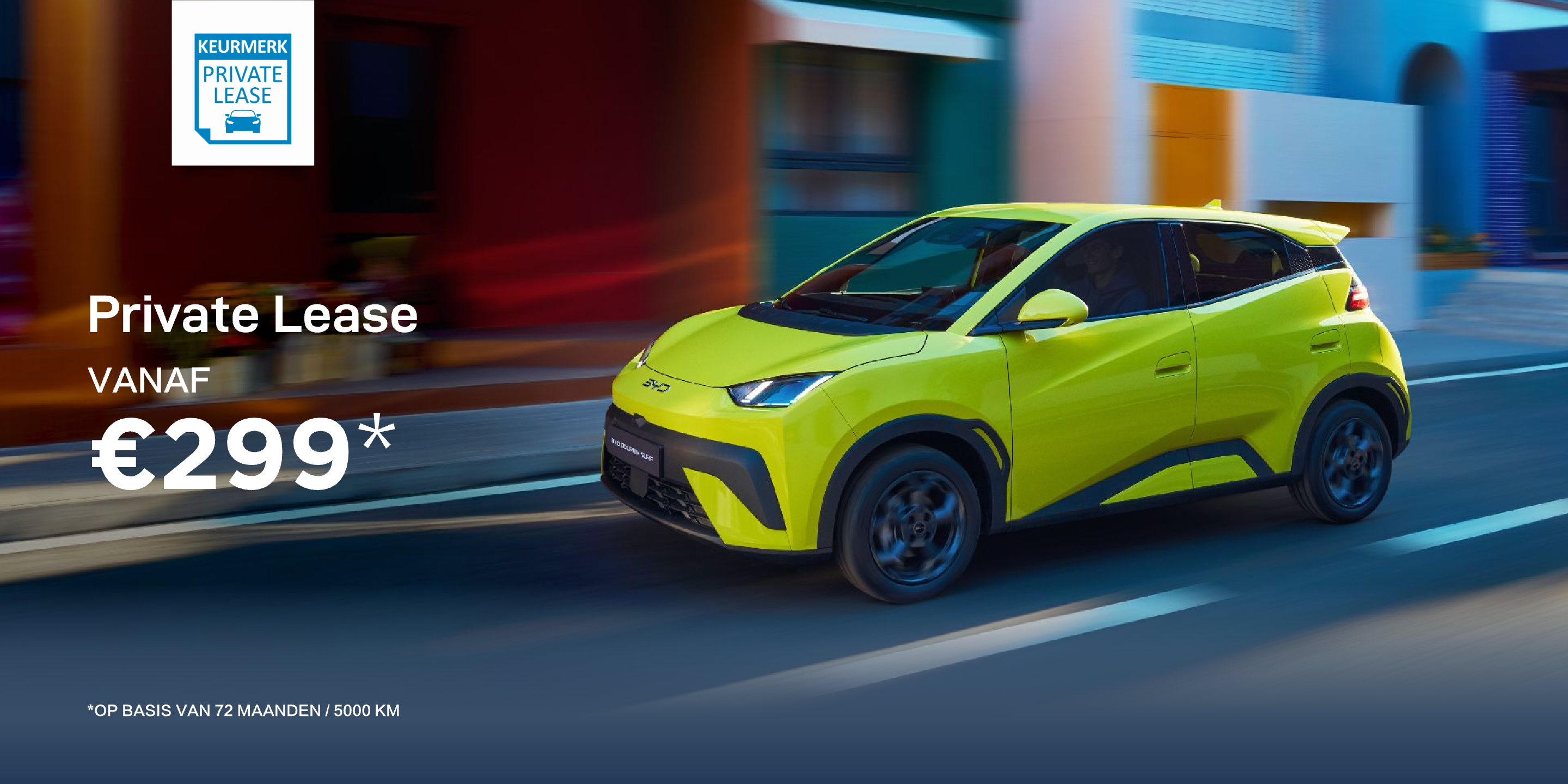 Dit aanbod wordt gedaan door BYD Lease, een handelsnaam van Axus Nederland N.V., en betreft een product dat gecertificeerd is door de Stichting Keurmerk Private Lease. De vermelde prijs is, tenzij anders aangegeven, een vanafprijs gebaseerd op een looptijd van 72 maanden in combinatie met 5.000 km per jaar. Het leaseproduct bevat alle componenten zoals voorgeschreven door de Stichting Keurmerk Private Lease. Kosten voor onder andere wassen, brandstof of laden, en updates van een eventueel navigatiesysteem zijn niet inbegrepen. Alle prijzen zijn inclusief btw.