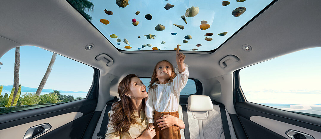 El BYD YUAN PRO DM-i, equipado con techo panorámico de cristal y toldo eléctrico, ofrece un espacio amplio y luminoso para que las caritas curiosas exploren. Transforma cada viaje en un parque infantil con vistas al cielo en movimiento.