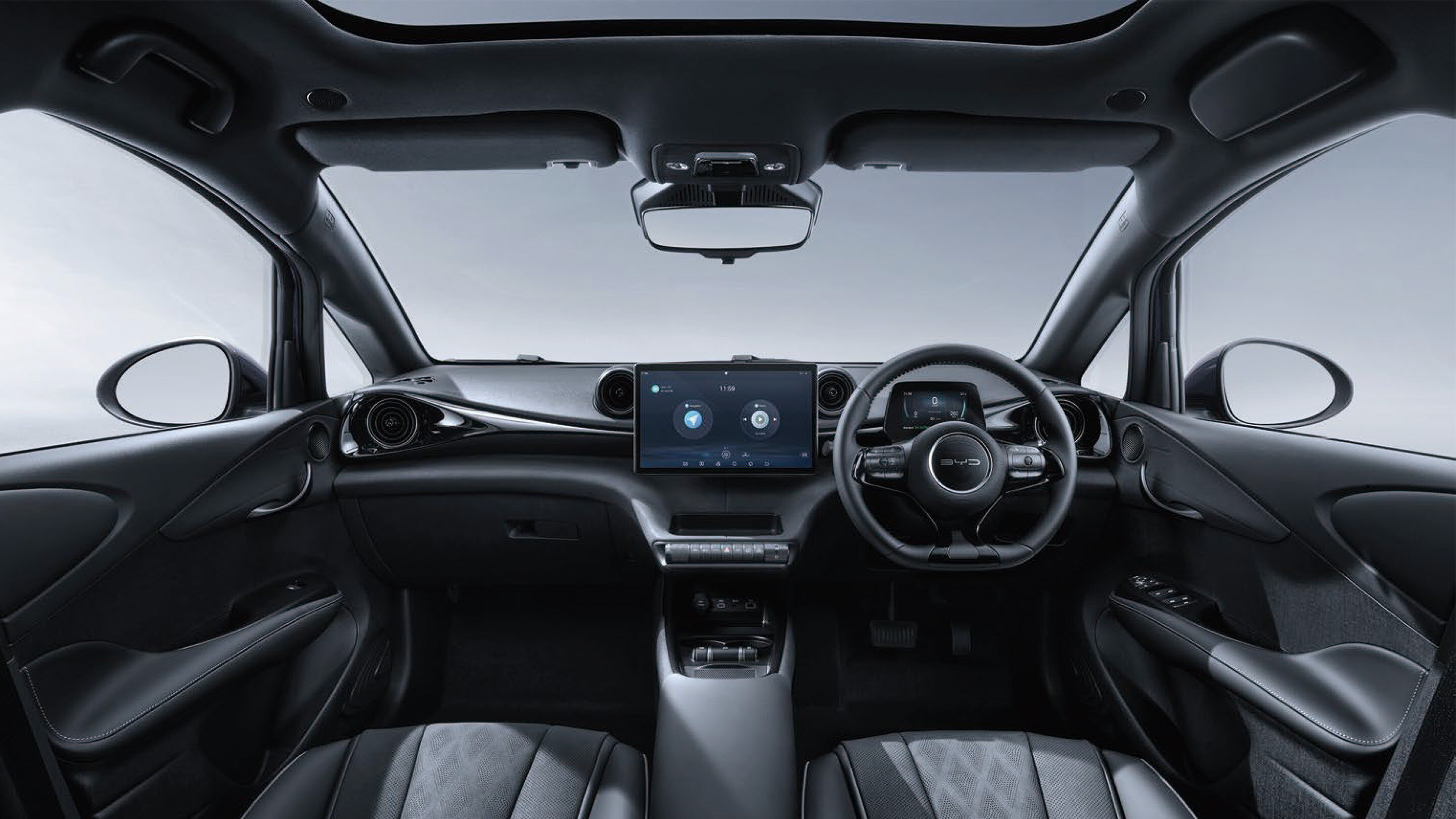 The futuristic suspended centre console design creates a modern, dynamic driving environment with its metal trim detail that runs across the entire dashboard, forming a beautiful, minimalist curved surface.