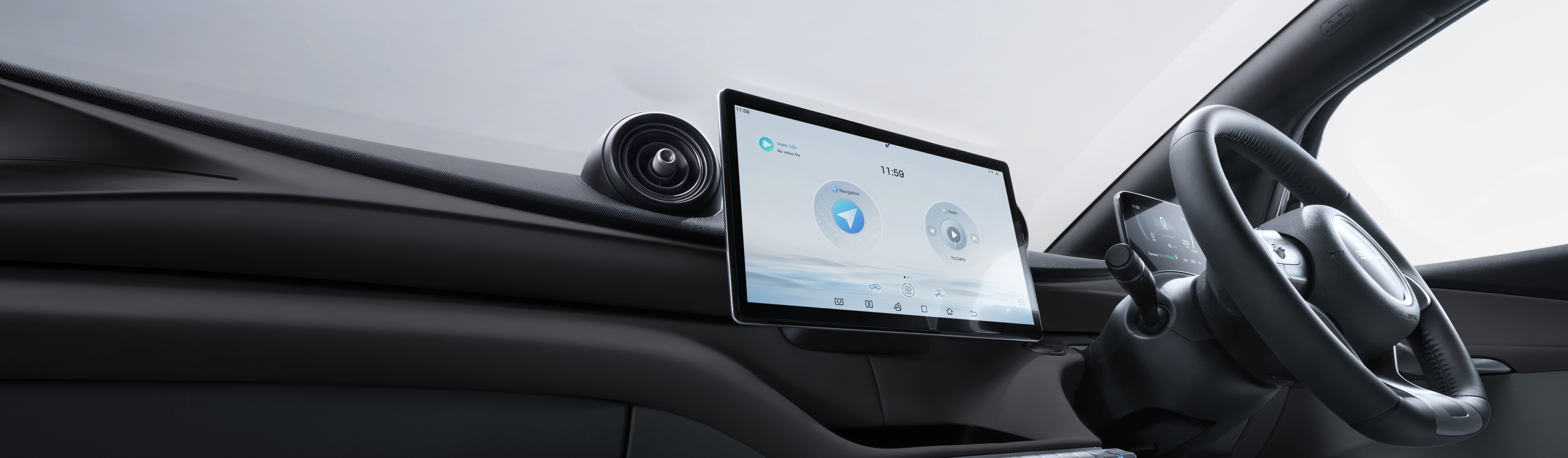Thiết kế bảng điều khiển trung tâm dạng treo đầy tính tương lai tạo ra một không gian vận hành xe hiện đại, năng động. Những chi tiết trang trí chạy dọc bảng điều khiển được làm từ chất liệu kim loại tạo thành một bề mặt cong tối giản, đẹp mắt.